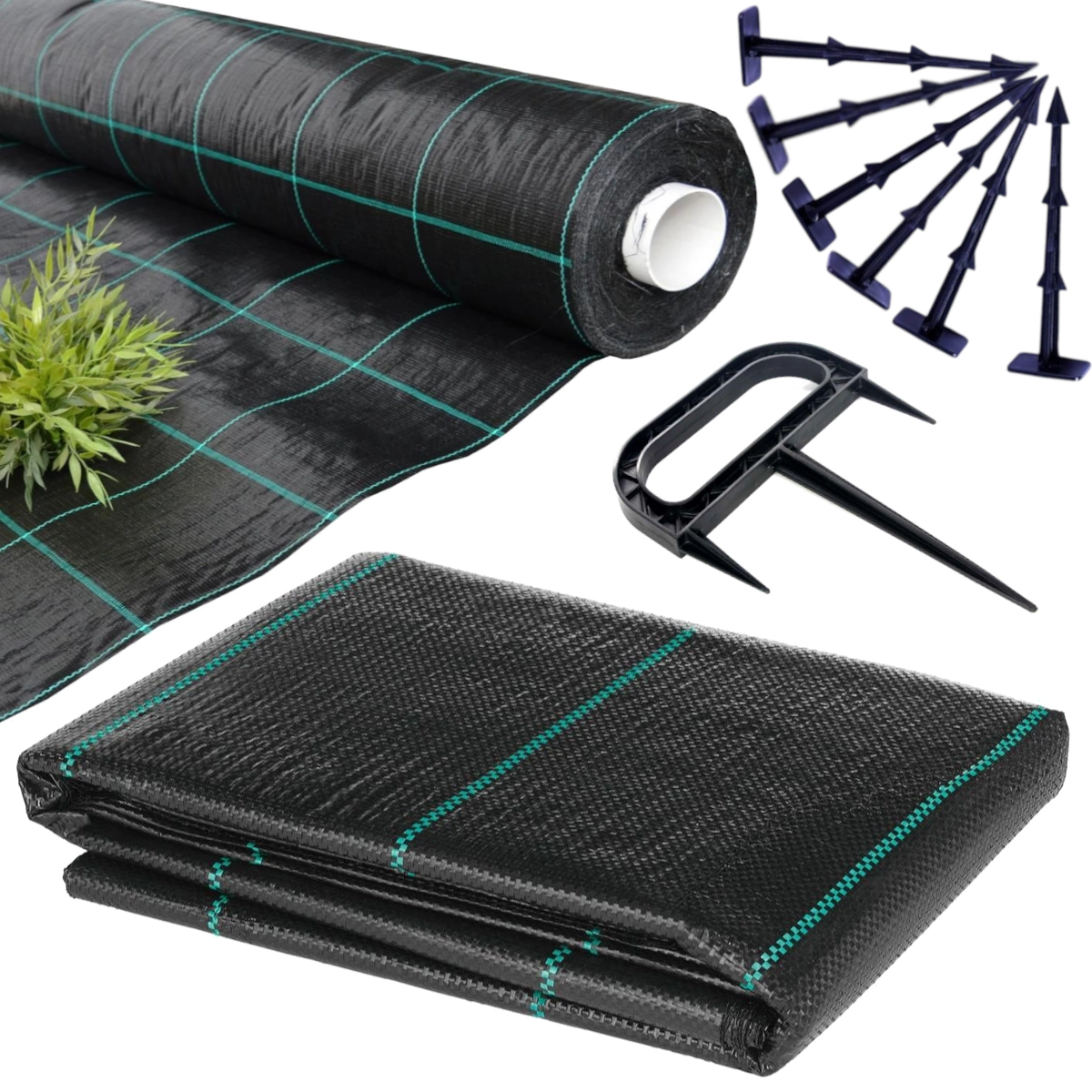 Zestaw: Agrotkanina 100 g/m² 1,6 × 10 m + Kotwy 150mm 100 szt. + Kotwa wielokrotnego użytku – Kompletny Zestaw do Ściółkowania