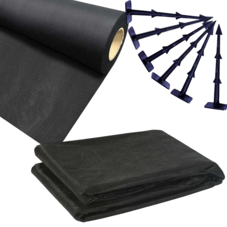 Agrowłóknina Czarna 10mb 50g + Kotwy 150mm 100szt – Mata pod Ściółkowanie i Chwasty