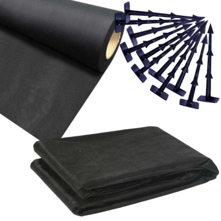 Agrowłóknina Czarna 20mb 50g + Kotwy 150mm 200szt – Mata pod Ściółkowanie i Chwasty