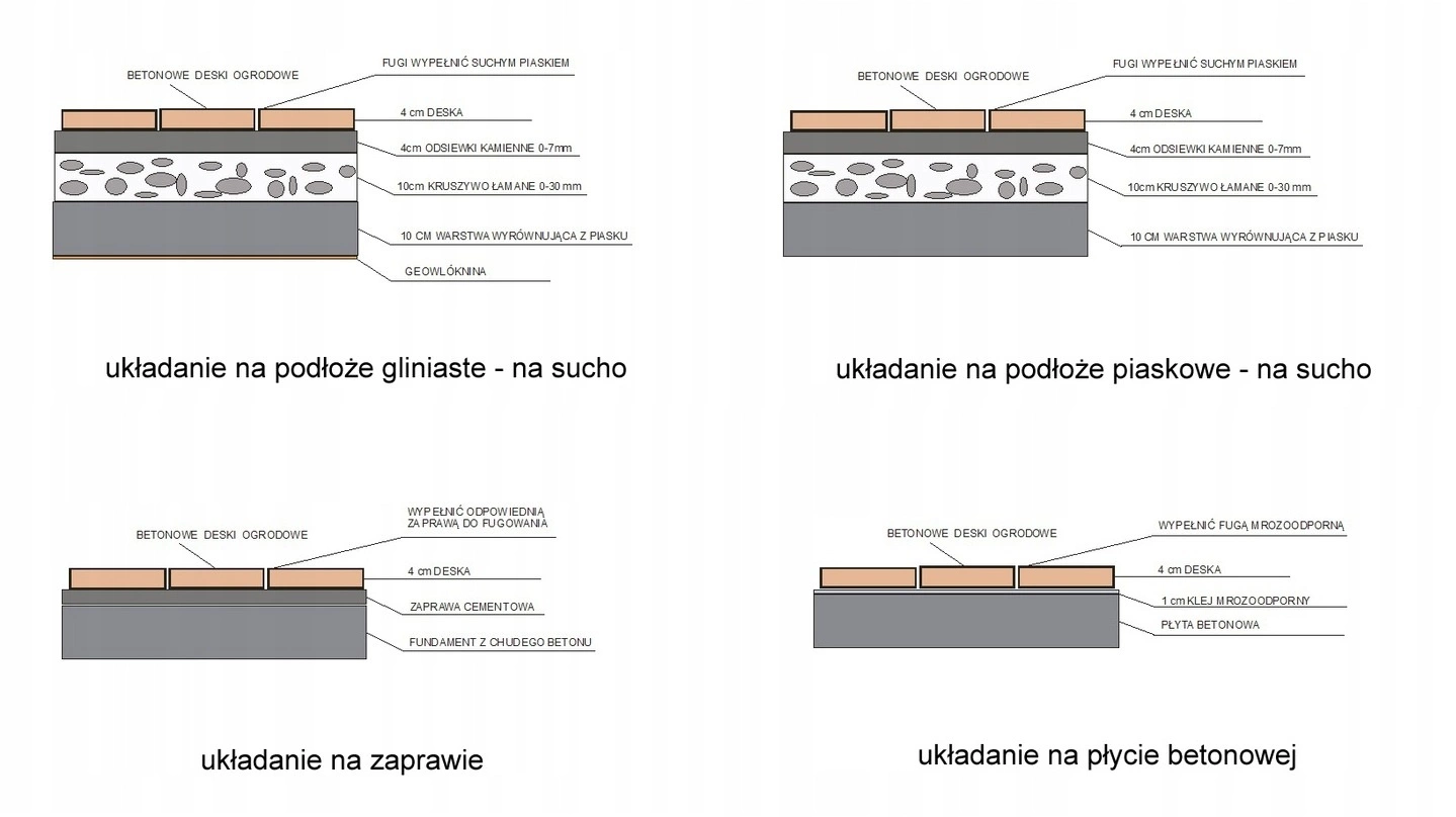 - Trwałość na lata – betonowe deski nie gniją, nie pękają i nie wypaczają się.