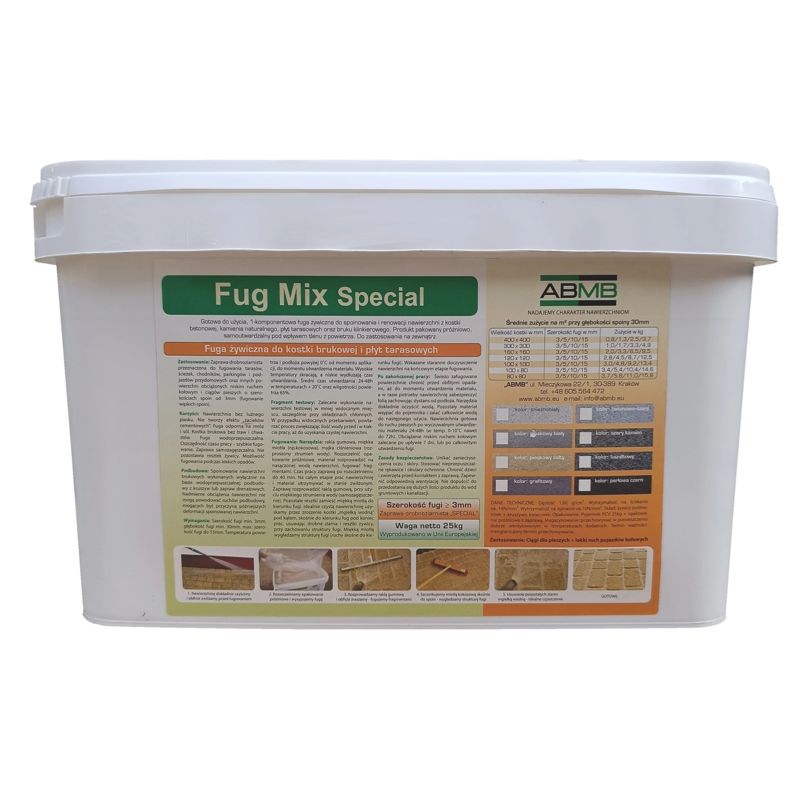 • Opakowanie: Pojemnik PCV 25kg + opakowanie próżniowe z zaprawą