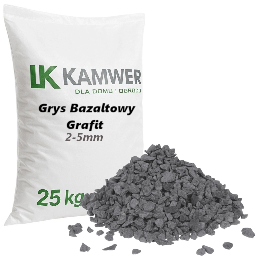 Grys Bazaltowy Grafit 2-5 mm, 25kg - Naturalny Kamień Ogrodowy, Dekoracyjny i Ozdobny na Ścieżki, Rabaty, Oczka Wodne i Tarasy