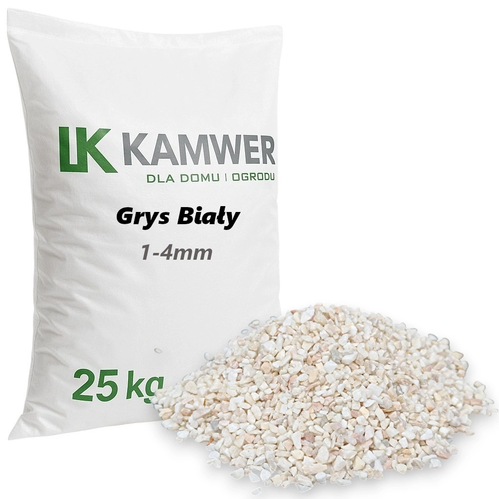Grys Biały 1-4mm, 25kg - Naturalny Kamień Ogrodowy, Dekoracyjny i Ozdobny na Ścieżki, Rabaty, Oczka Wodne i Tarasy