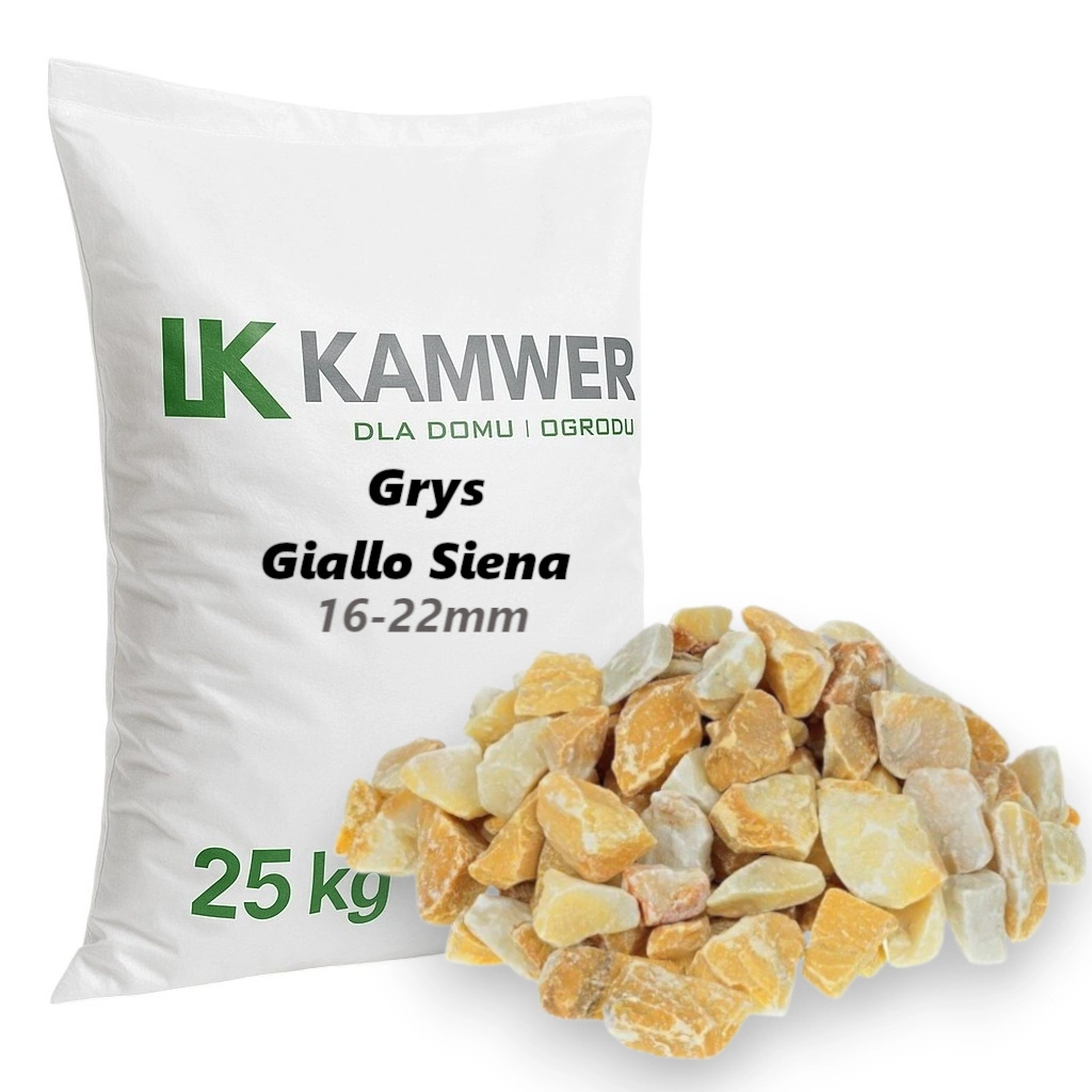 Grys Giallo Siena 16-22mm, 25kg - Naturalny Kamień Ogrodowy, Dekoracyjny i Ozdobny na Ścieżki, Rabaty, Oczka Wodne i Tarasy