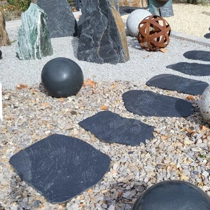 - Kamień ten doskonale sprawdzi się w ogrodach japońskich, skalniakach, przy budowie ścieżek, tarasów oraz w różnorodnych projektach architektury ogrodowej tworząc spokojne i harmonijne przestrzenie, w których można się zrelaksować.