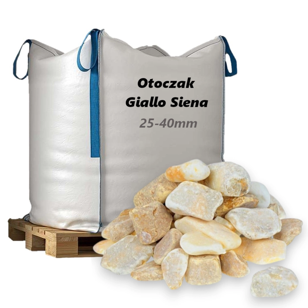 Otoczak Giallo Siena 25-40mm, 1000kg - Naturalny Kamień Ogrodowy, Dekoracyjny i Ozdobny na Ścieżki, Rabaty, Oczka Wodne i Tarasy