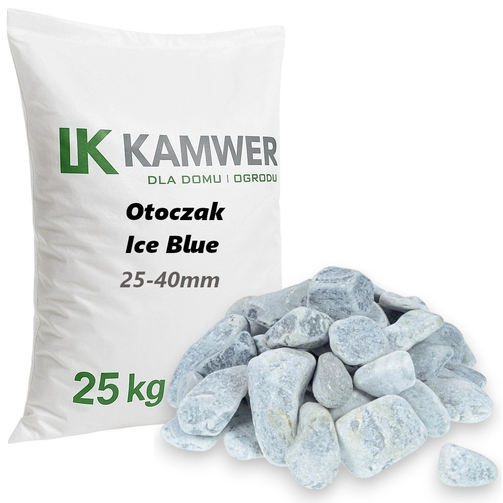 Otoczak Ice Blue 25-40mm, 25kg - Naturalny Kamień Ogrodowy, Dekoracyjny i Ozdobny na Ścieżki, Rabaty, Oczka Wodne i Tarasy