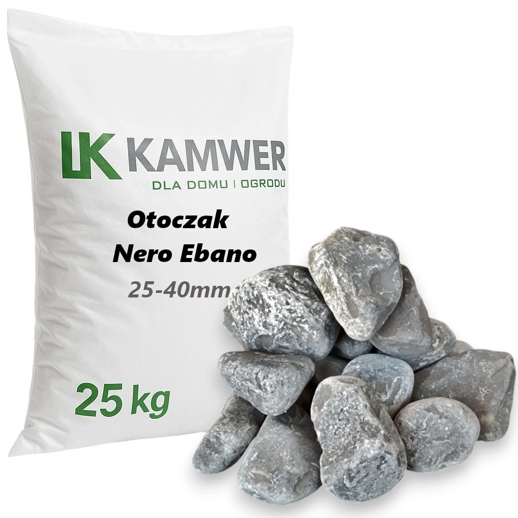 Otoczak Nero Ebano 25-40mm, 25kg - Naturalny Kamień Ogrodowy, Dekoracyjny i Ozdobny na Ścieżki, Rabaty, Oczka Wodne i Tarasy