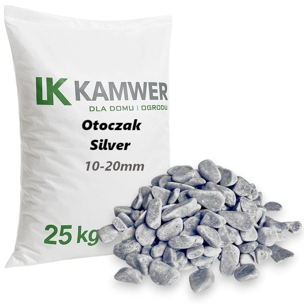 Opinie o Otoczak Silver 10-20mm, 25kg - Naturalny Kamień Ogrodowy, Dekoracyjny i Ozdobny na Ścieżki, Rabaty, Oczka Wodne i Tarasy