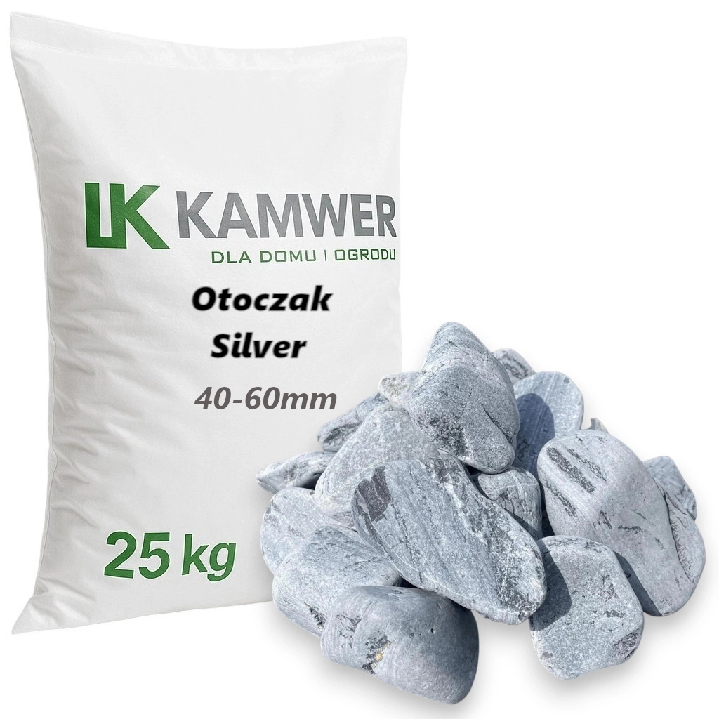 Otoczak Silver 40-60mm, 25kg - Naturalny Kamień Ogrodowy, Dekoracyjny i Ozdobny na Ścieżki, Rabaty, Oczka Wodne i Tarasy