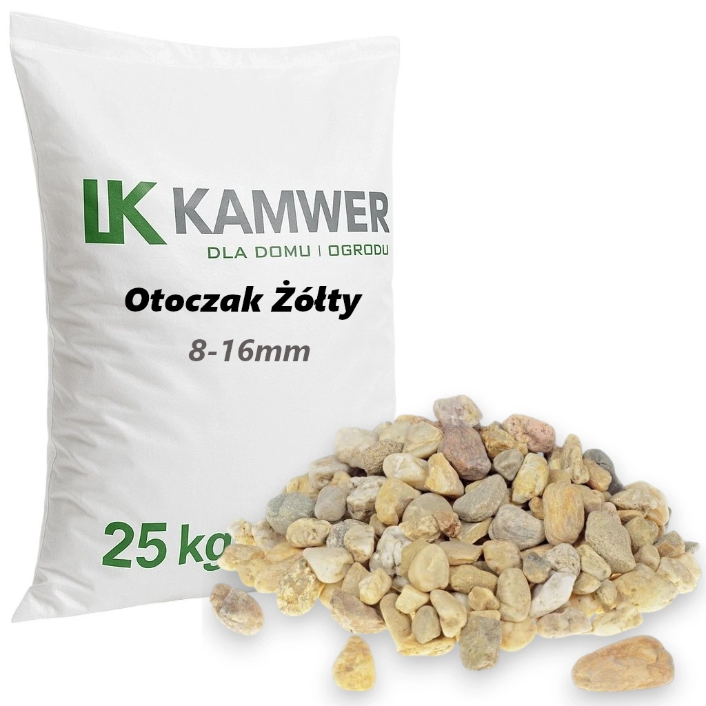 Otoczak Żółty 8-16mm, 25kg - Naturalny Kamień Ogrodowy, Dekoracyjny i Ozdobny na Ścieżki, Rabaty, Oczka Wodne i Tarasy