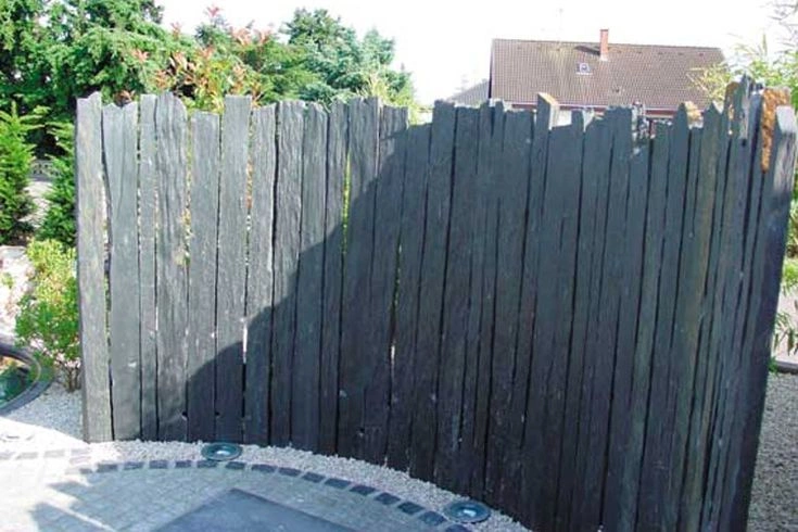 - Charakteryzuje się wyjątkowym wyglądem, łupaną powierzchnią w kolorze grafitowym, która doskonale komponuje się w nowoczesnych i klasycznych ogrodach.