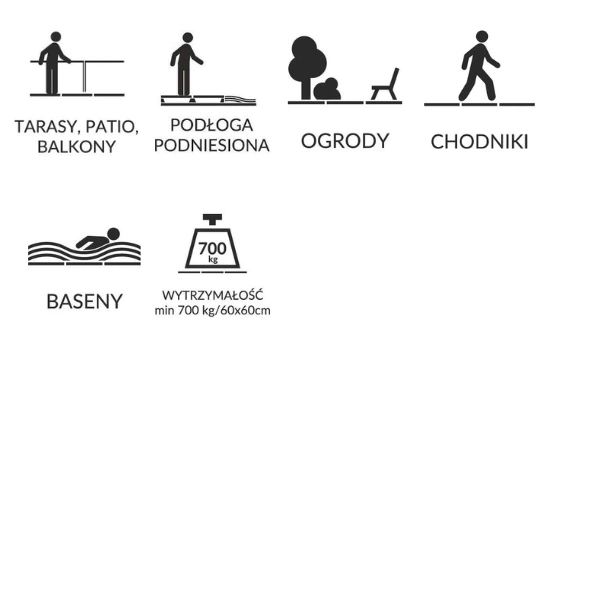 • Stworzone do miejsc o wysokich standardach użytkowych, takich jak tarasy, balkony, podjazdy, patio, ogrody, alejki, czy przestrzenie wokół basenów.