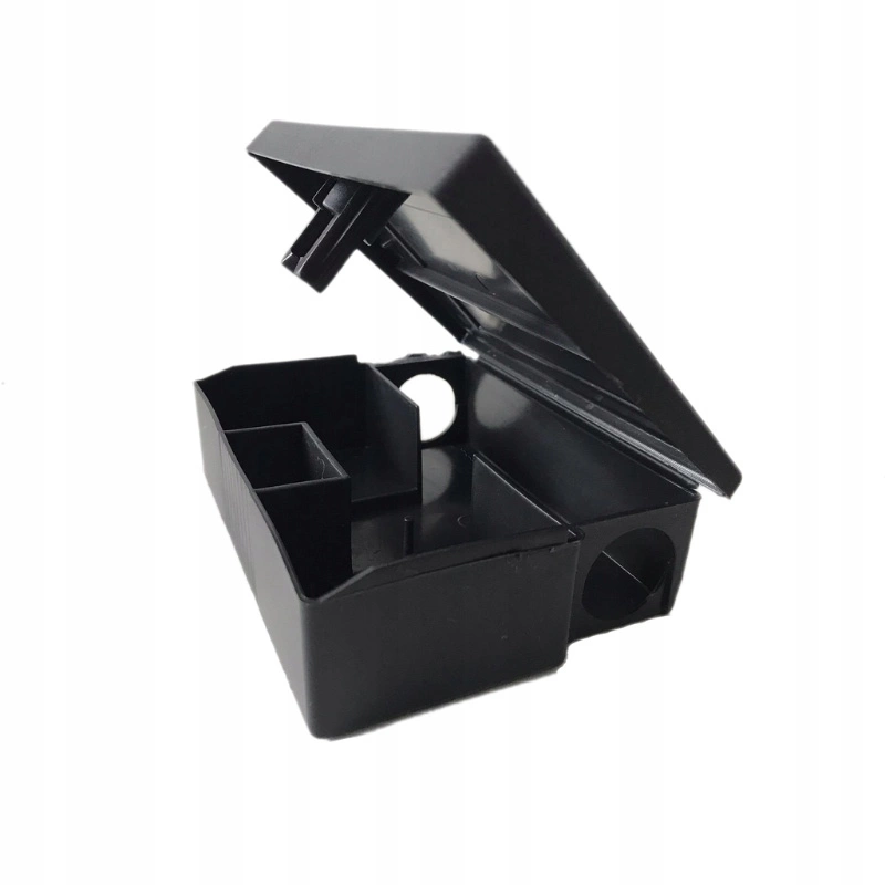 - Konstrukcja z niewielkimi otworami po bokach pozwala myszom na łatwy dostęp do trutki, jednocześnie zapobiegając przypadkowemu spożyciu środka przez dzieci, zwierzęta domowe oraz ptaki.