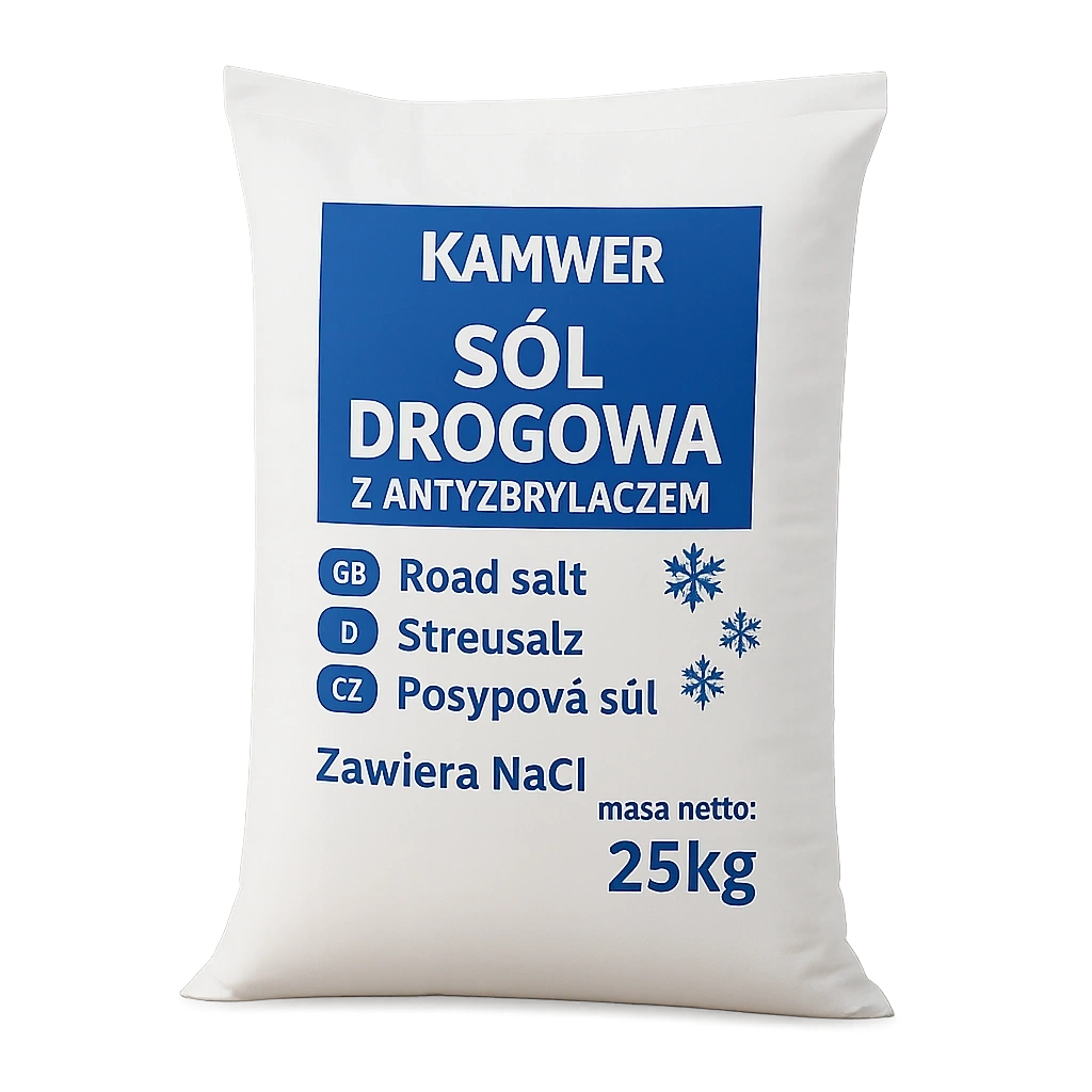 • Zawartość NaCl: 98,2% – szybkie topnienie lodu i śniegu.
