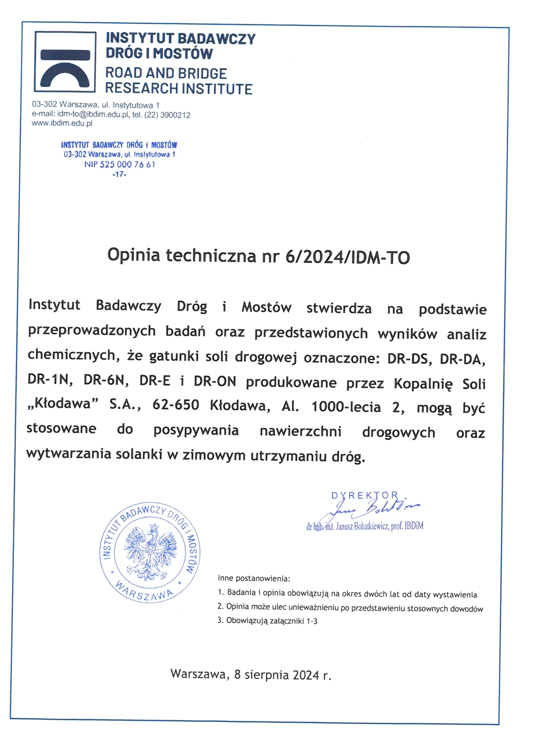 Dane Techniczne Soli Drogowej: