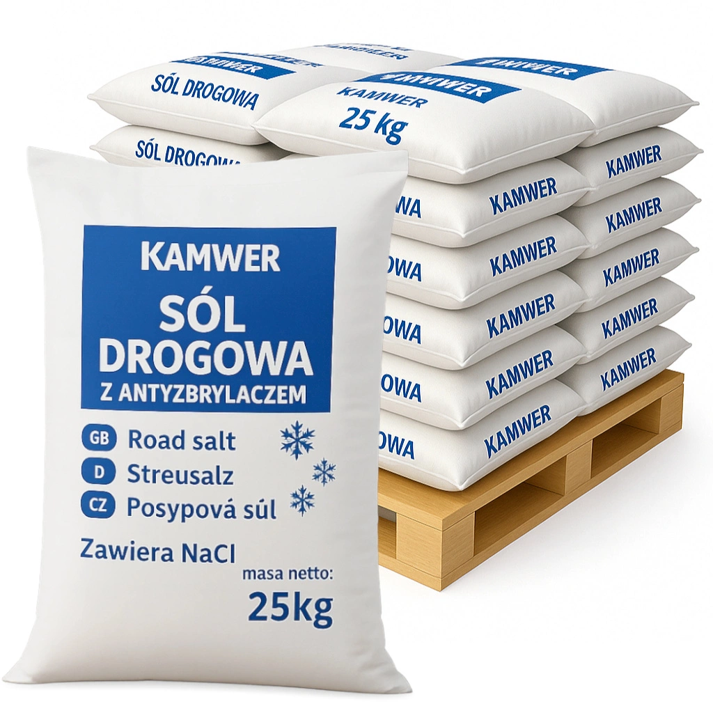 Sól drogowa workowana 500 kg (20 worków po 25 kg) to skuteczny i wygodny środek do zimowego utrzymania dróg, chodników, parkingów i terenów firmowych. Produkt spełnia normę PN-86/C-84081/02, zawiera antyzbrylacz i zachowuje sypkość nawet podczas długiego przechowywania. To praktyczne rozwiązanie dla wspólnot mieszkaniowych, firm, instytucji i klientów indywidualnych.